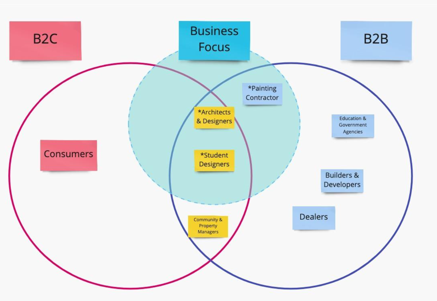 While the website content makes a clear distinction between B2B and B2C customers, the sales team's tactic was to reach out to customers who are new to the industry whom has the potential to be either B2B or B2C, supporting the case found during user testing for new users.
