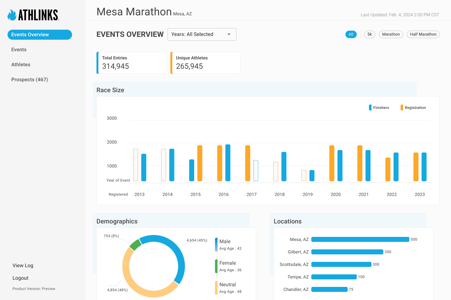 Powered by AI, designed a dashboard for Event Directors to have their athletes and registration data at their fingertips.